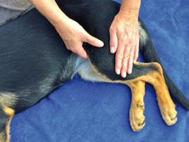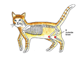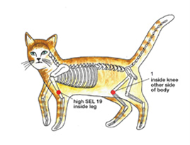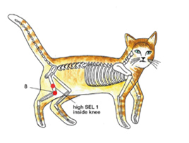 Or place one hand on the right SEL 8 and the other hand on the right high SEL 1 (about a paw’s width above SEL 1).