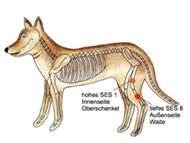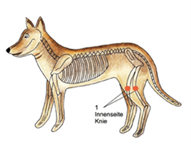 To relieve colic, place your hands on both SELs 1, on the inside of the knee joints on the hind legs.